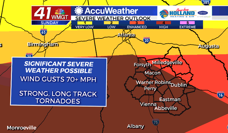 Main threats for this system, for ALL OF MIDDLE GA, are damaging winds (70 mph winds), strong tornadoes, and flash flooding.