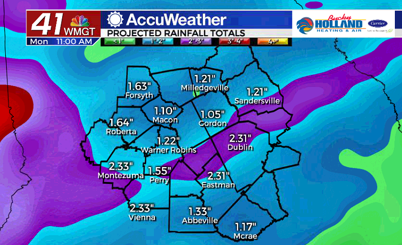 To make matters worse, we will also see an increased threat of flash flooding in the area. Some parts of Middle Georgia could see 3″ of rain in just a matter of hours.