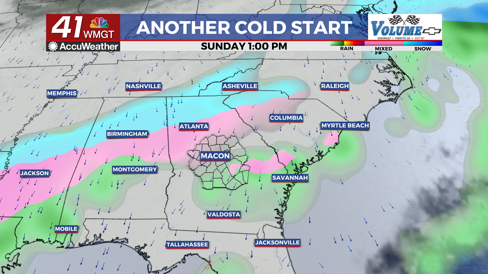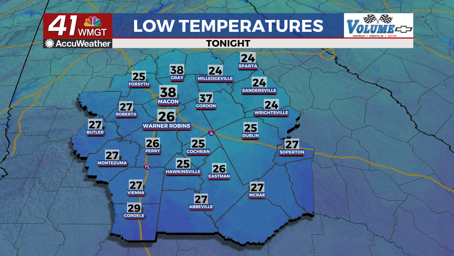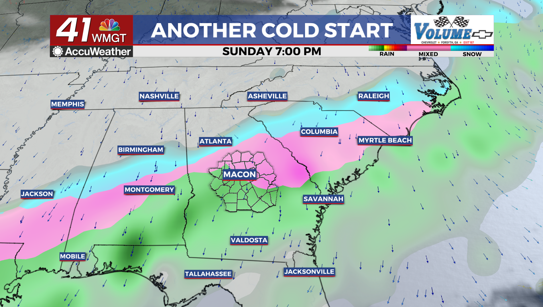 For Tuesday morning, temperatures should be in the upper teens in northwest Georgia and lower 20s across Middle and eastern Georgia. This will result in feel like temperatures in the teens for most between the hours of 5 AM to 9 AM.