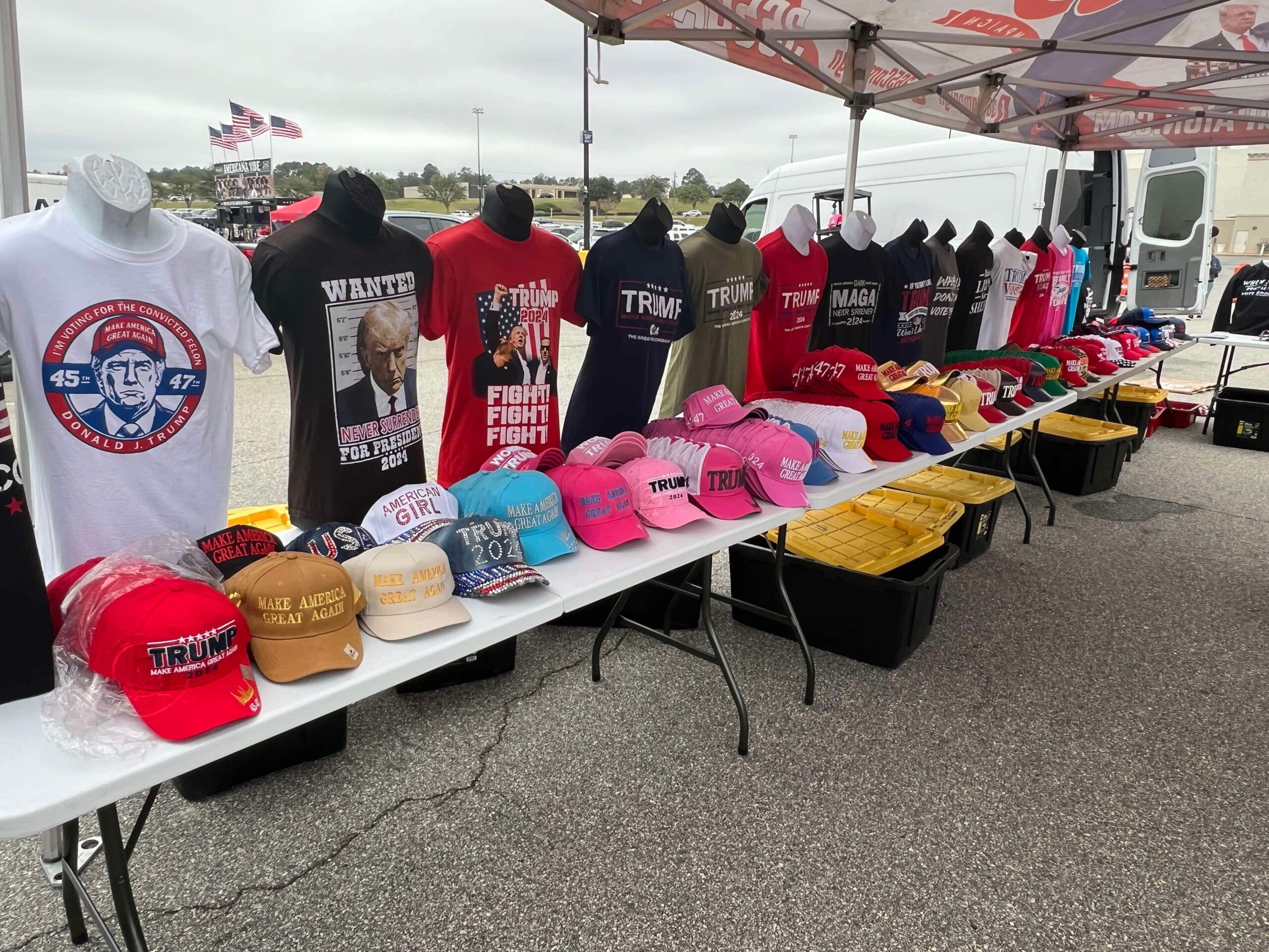 Vendors are lined up outside Atrium Health Amphitheater ahead of a rally Sunday night for former President Donald Trump.