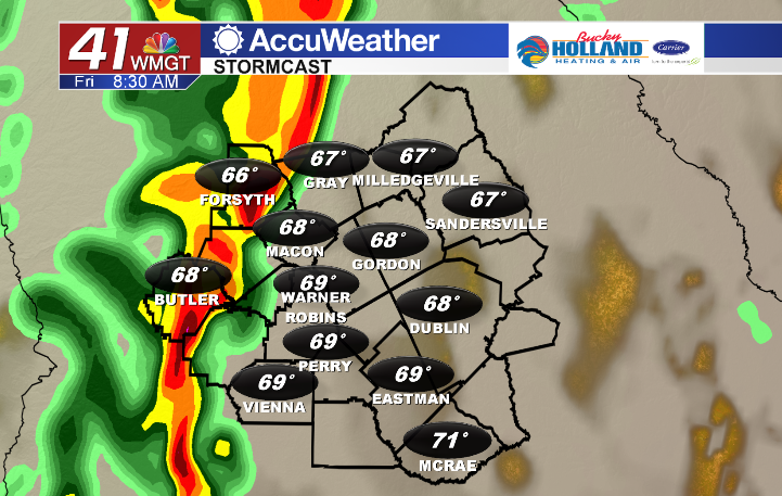 Storms will likely roll into Middle Georgia as early as 4am. Our in hour model showing the bulk of the storm activity around 7am. Stay on guard for the possibility of strong storms at any point of the early morning hours.